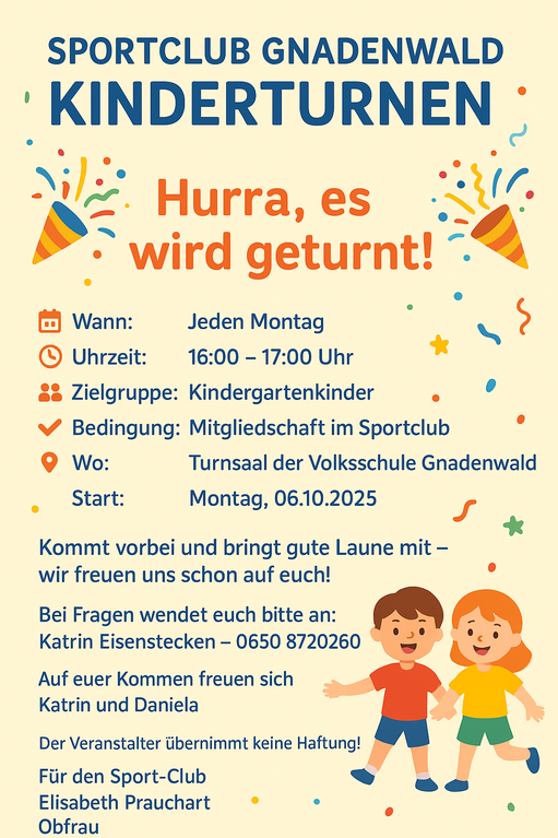 Ein ganz besonderes Highlight war dieses Jahr die Kindererlebniswoche, die in der letzten Ferienwoche stattfand. Es war uns ein Anliegen, eine Möglichkeit zu schaffen, die Gnadenwalder Kinder eine ganze Woche lang direkt in der Gemeinde zu betreuen. Mit Unterstützung der Gemeinde, die Barbara Praznik als dauerhafte Betreuungsperson stellte, sowie zahlreiche Gnadenwalder Vereine mit über 30 Freiwilligen gelang es uns, eine erlebnisreiche Woche für Kinder zwischen 6 und 12 Jahren zusammenzustellen. Ein herzliches Dankeschön gilt all jenen, die diese Woche ermöglicht haben, sich mit viel Eifer in die Planung und Umsetzung geworfen haben. Vom Sportprogramm wie Fußball, Völkerball und Volleyball, über das Schwammerlsuchen, Malen, die Wanderung auf die Walder Alm, den musikalischen Vormittag, die Kräuterkunde und den Spielenachmittag sowie den tollen Vormittag mit der Feuerwehr – es war vieles dabei und die Kinder sowie die Betreuer waren mit Begeisterung dabei. Es freut uns sehr, dass das Angebot der Kinderbetreuungswoche so gut angenommen wurde. Über 40 Kinder haben diese Woche zu etwas ganz Besonderem gemacht.